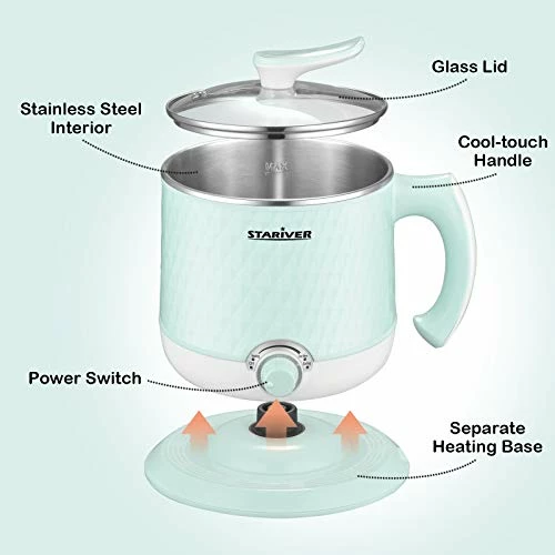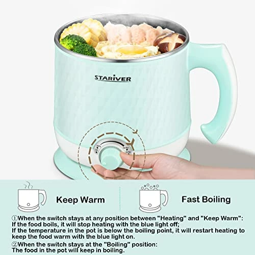 - โ [Healthy Eating] – The ramen cooker interior made of 304 stainless steel is highly rust-resistance during washing and using, as well as does no harm to food for cooking to give you a healthy eating. The hot pot cover made of glass ensures that food is easy to see. And the keep warm function will work repeatedly to stabilize the temperature inside the electric pot for whenever you want to eat.