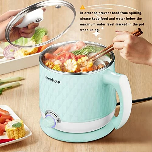 - โ [Multipurpose Use] – This hot pot is perfect for cooking noodles, soup, porridge, dumplings, eggs, pasta, oatmeal, providing you with various choices for preparing your daily meal. The electric hot pot is suitable for people living in apartments or in dorms without kitchens to use as a multi-functional replacement of stove, and also available for a party of friends or family and travel.
