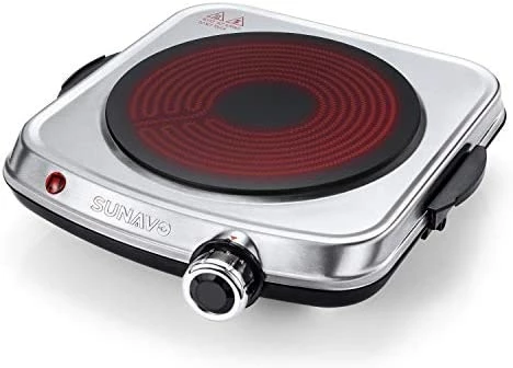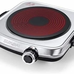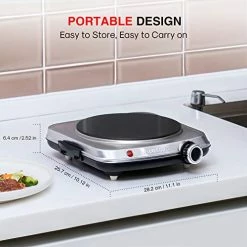 Purchased and returned. I have to stop buy these cheap hot plates.Pro:Heats up fast to boil waterCheapVery portableCon:Temperature Control is terrible. High or off (Boil water or Not)Cook time. After 15 mins the whole thing gets hot, so it stops working and you have to wait for it to coolSmall Hot Spot. The heating coil is about 2 inches smaller radius than the plate (1 inch circumference smaller) would not use anything larger than 6 inch pot / pan