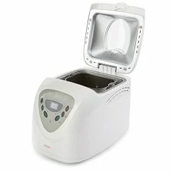 Not having owned a bread machine before, I did my online research and decided to try a reasonably priced “good-enough tester” machine… Well, I’m VERY glad that I decided to purchase this “more-than-good-enough” model!This particular model is reasonably quiet while in operation, beeps after the 1st rest to indicate that it’s time to add the nuts/raisins, etc., and beeps after the baking cycle is completed (if the bread is not removed from the machine as soon as it’s done, it might lose moisture during the auto keep-warm cycle). I’ve twice made the following recipe with pine nuts and twice made pistachio-raisin bread (from “the Big Book of Bread Machine Recipes”)–delicious.The best part about this machine baking process is that it’s not at all difficult in any way. Here is the typical baking process: Warm the liquid in a glass measuring cup in a microwave, stir in the salt/honey/sugar/butter in the warm liquid, pour the mixture into the baking pan, place the pan on the scale, adjust the scale to zero, add the required flour (1 cup flour = 4 to 4.5 oz), level the flour, add the yeast, twist to lock the pan into the breadmaker, plug in the breadmaker, select the crust color (best to try the “Light” color first), select the baking setting, after about 5 min. check the dough and add water/flour if necessary (very important step), remove the bread to a cooling rack as soon as it’s done, then wipe the baking pan when it’s cool enough. (It’s helpful to have a portable timer on you to remind you to remove the bread, wherever you might be.)The clean up is SO MINIMAL that the bread tastes just that much better! And, whenever we want oven-baked loaves, I’d simply use the breadmaker’s dough cycle to lessen the clean up and do the rest as usual.However, there are some negative aspects related to this bread machine:1. The user manual is very uninformative for a new user, so don’t even bother. Instead, buy “The BIG Book of Bread Machine Recipes” by Donna Rathmell German (on Amazon; 600 recipes from 5 of her bread machine cookbooks) or other bread machine cookbooks and rest assured that the resulting loaves will be enjoyable and varied.2. On my machine, I had to make sure to select the “light” color, else the loaf gets too brown/too thick crusted.3. So far, all 4 loaves have slightly caved/sunken/deflated as soon as the baking cycle kicked in. Although the loaves are just slightly sunken, and the appearance and taste were not affected in any way, I will try using less liquid than normal (for a firmer dough) or less yeast (to slow the dough expansion process for this machine) to prevent the sunken look next time.Useful tips for new bread machine user:1. Get a dependable scale, instant-read thermometer, and a liquid measuring cup–approximations might not work well when you’re new at using bread machines.2. For the basic cycle, if baking the bread right away, you can just place all the ingredients right into the baking pan regardless of the liquid-first order stated on the manual.3. If adding additional flour/liquid to the baking pan, add carefully. Any spilled gunk on the bread machine’s bottom or heating element might take some scrubbing if baked in.4. If additional kneading time is desired, just stop and restart the machine for additional gluten development/knead time.5. For the initial confidence-building 2-pound loaf, try this tested recipe (might have to set your Sunbeam to “Light” color): 1 1/3 cups milk and/or water, 2 tb honey/sugar, 1 1/2 teaspoons salt, 2 tablespoons butter, 4 cups bread flour (I used Gold Medal unbleached all-purpose), 1 1/2 teaspoons active yeast, 1/4 – 1/3 cup of pine nuts/other chopped nuts (optional). Remember to check the dough consistency after about 5 minutes and add liquids/flour if too wet or too dry.6. If the bread dough is over-rising at the top of the bake pan, either:a. simply scoop some dough carefully off the top, put the extra dough in a greased baking vessel of suitable size. Let dough rise a bit in the oven with the pilot light on, take dough out, preheat the oven at 350F-375F, spray some water in the oven to encourage crust formation, and then bake until the top is golden brown (internal temp. of about 180F to 200F); bake the other portion in the bread machine as usual; -OR-b. remove dough from the machine completely– separate the dough into two greased baking vessels of suitable size. Let dough rise a bit in the oven with the pilot light on, take dough out, preheat the oven at 350F-375F, spray some water in the oven to encourage crust formation, and then bake until the top is golden brown (internal temp. of about 180F to 200F).7. Store bread in the freezer for fresh-tasting bread any time: divide the bread into serving portions, place in Ziplock bag(s), suck out/remove the air (but don’t crush the bread), and store in the freezer; defrost (in the bag) in room temperature (or wrap the bread in a moist paper towel and microwave for a few seconds) before devouring. Make life even easier–bake extra loaves and freeze them.Conclusion: If you like the taste of “just-baked” breads, but don’t like the messy cleanups and the typical baking-related efforts => well, this one is worth the try, and it is worth the price. Just remember to get a bread machine recipe book and enjoy all the possibilities. Great machine!Additional info (8/5/12): I now own two of this — this review was for the first one, purchased from Amazon, for $40 at that time; the second one might have been purchased from Walmart a few months later for a few dollars more.