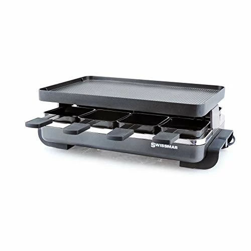- Includes 8 heat-resistant spatulas and 8 raclette dishes with non-stick coating