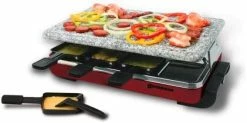MY FAMILY AND I LOVE THIS THING! Ha ha… our 2nd time using it my son asked if I’ve already made out my will. Twisted sense of humor I know, but it made me laugh. My reply was that I have, and he has to mud-wrestle his sister for it. Since my children are college age and I’m hopefully a ways off from them getting to inherit anything I love to use… I will be getting them all one of these for Christmas. :)It’s amazing and fun and makes some yummy stuff. I mean OMG… melted cheese!!! I guess my only complaints would be the plastic handles on the cheese trays… my aunt pushed hers in too far and melted it. I’m not a fan of teflon for many reasons and wish I had options there… plus the cheese does stick sometimes and then you scratch them getting it off. :/ I love that you can flip this over for grilling or crepes. I love that you can order the granite top one and it fits and works just great. I mean, I wish it were a little bigger given that it has 8 trays for cheese. Really only 4 people can use what we call the “grill real estate”. You steak out your little corner and if you’re hungry it can be a wait. No matter, this is loads of fun. I also love that it’s more user-friendly than Fondue. I have learned so much about cheeses and their melting characteristics. Raclette cheese is impossible to find except around the winter holidays, and then it’s still difficult. But if you find a place with a variety of other cheeses, this is seriously a must-have!