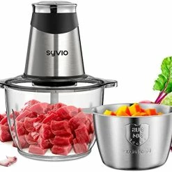 - Versatile Kitchen Essential: Starting preparing delicious meals for your family with 8 cup glass bowl, and separately for you baby with 5 cup stainless steel bowl. SYVIO BPA FREE food chopper helps chopping, blending, pureeing, mixing and mincing a variety of ingredients for the perfect texture every time-thorough.
