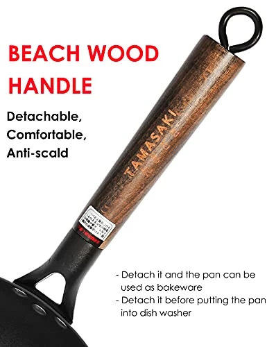 - ?β?COMFORTABLE WOOD HANDLE AND TRANSPARANT GLASS LID: Detachable beech handle, safe grasp and perfect hand feel, anti-scalding and convenient for install. Tempered glass lid enables you to watch the food easily from start to finish.