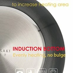 - ?β?INDUCTION COMPATIBLE, WASHER SAFE: The composite bottom of the pan ensures that when heated by induction cooker, the bottom won’t bulge. It’s compatible for electric induction, gas and ceramic stoves. The flat base sits securely on any cook tops including glass & gas. This wok is also washer safe since it has no coating or easy damaged parts.