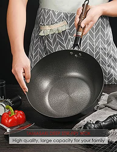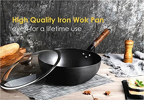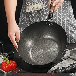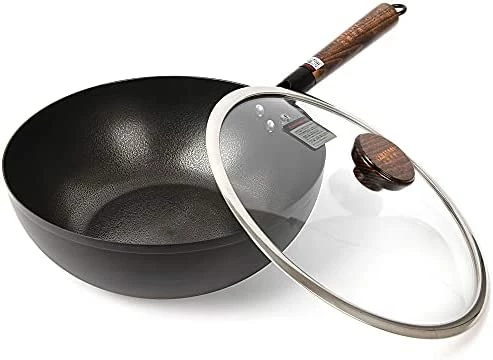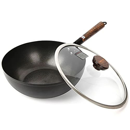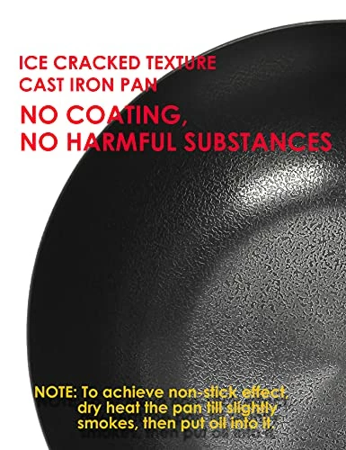 - ?β?PHYSICAL NONSTICK DUE TO STEAM SUSPENSION EFFECT (MUST PRE-HEAT THE WOK BEFORE COOKING): This wok is with ice cracked texture surface, which comes from thousands of times of hammering. The texture significantly increases the heated surface area, and achieves air suspension effect easily, thereby preventing food from sticking to the pan. No chemical coating needed compared with traditional non-stick fry pans or woks.