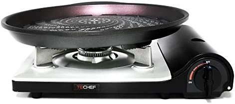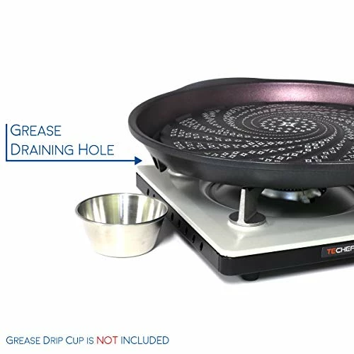 We love Korean Barbecue and we always look forward to dining out at Korean restaurants that specializes in do-it-yourself cooking of assorted meats, seafood, and vegetables. Dining out gets expensive and weโve been researching an ideal grill to have at home. Weโve considered our place with little ventilation and read into numerous reviews from YouTube and blogs on what to purchase.After doing intensive research and comparison to other grills, we came upon on the TeChef stove top grill. Our household is particularly picky about cookware and we tend to use the more expensive cookware to get desired results especially with our meat. The Teflon material with the 5 layer coating met our expectations. The results of the food is delicious and is taste just as delicious as you would find at a Korean restaurant and thereโs countless of meat cuts, assorted seafood and vegetables that you place on the grill.The nonstick yet study grill makes cleaning a breeze. No intense scrubbing necessary, the brunt marks and heavy amounts of oils still stuck on the grill easily comes off without having to put in elbow grease when hand washing your grill. Itโs also a bonus for those that prefer to utilize the dishwasher since the product is dishwasher safe and I havenโt had any issues regarding using the dishwasher but be sure to . Keep in mind that Teflon can also be easily scratched so be aware of the utensils and the type of sponge you use. We use wooden chopsticks, silicon tongs, and any non abrasive sponge to maintain our grill.Another feature that we love is how the design of the grill drains the fat. The dome design allows the fat to drop down to the grease draining hole. The only issue is that you need to come up with a collecting cup to collect the grease, which makes the grill NOT suitable for a stove top. Because of the draining hole feature, we do not recommend this grill for those that want to utilize the stove top since that are other grills on the market that can alternate between the stove top and a portable stove top.Our rating scaleDesign: 5/5Utility: 5/5Effectiveness: 5/5Noticeable flaws: None that we can see!Can I use it on my gas stove or do I have to buy a portable gas stove?You can use your own gas stove, but this product is more enjoyable when cooking with friends and family on a portable gas stove! Also the side drain to drain the meat will be in the way of you grilling on your stove as well.How long does the teflon coating last?We’re currently at a few months in and so far so good (knock on wood!)Where is it made?It is made in Korea and distributed in the United States.Our answers to the frequently asked questions:Overall, if you’re looking for a great BBQ grill to enjoy eating sizzling meat at home, then this grill is for you. We suggest picking up theย GAS ONE GS-3000 Portable Gas Stove with Carrying Case, 9,000 BTU, CSA Approved, Black ย as an accompaniment stove for this particular grill.Like our review? Hit the “Yes” button below for it being useful. Leave us a comment if you have any questions or send us an email. Thanks for reading!
