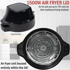 A multi-use appliance that combines the best parts of pressure cookers and air fryers into one convenient machine. With this, you get a pressure cooker, air fryer, slow cooker, rice cooker, steamer, yogurt maker, and a machine perfect for sautΓ© or searing!Includes 14 smart built-in programs: soup/broth, meat/stew, bean/chili, poultry, steam, rice, porridge, multigrain, slow cook, keep-warm, yogurt, pasteurize, pressure cook. Allows you to quickly cook ingredients using the pressure cooker, followed with using the air frying lid to give your meals a crispy, golden finish.Pressure cook up to 70% faster versus traditional cooking methods, air fry with up to 75% less fat than traditional frying methods.6L double-coated dishwasher safe inner pot: nonstick, PTFE/PFOA-free, and easy to clean, enough capacity to cook a roast for your family. 4QT crisping basket: large-capacity, stainless steel, PTFE/PFOA-free basket holds up to a 3.5 lb. chicken, 3 lbs of French fries! Made with stainless steel for easy cleanup.FEATURESDual pressure settings for flexible cookingDurable stainless steel inner potBrushed stainless steel exterior1000 W of power for pressure cooker, 1500 W for air fryer oven.Dimensions with Pressure Cooker Lid: 13.38″ x 12.20″ x 13.38″Β Dimensions with Air Fryer Lid: 13.38″ x 12.20″ x 14.56″