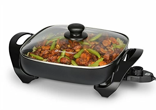 - 11-inch electric skillet with tempered glass lid ideal for sauteeing, grilling, cooking eggs and more
