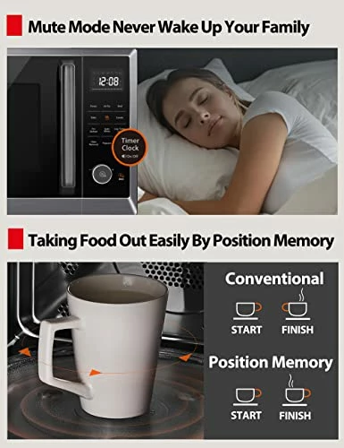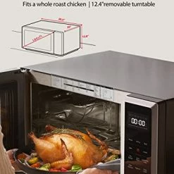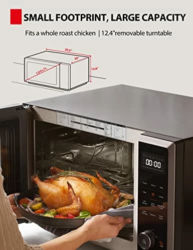 - ใLarge Capacity, Small Footprint as Kitchen Essentialใ 12.4inch removable turntable can fit a whole roasted chicken, 12-inch pizza and 8*4-inch casserole