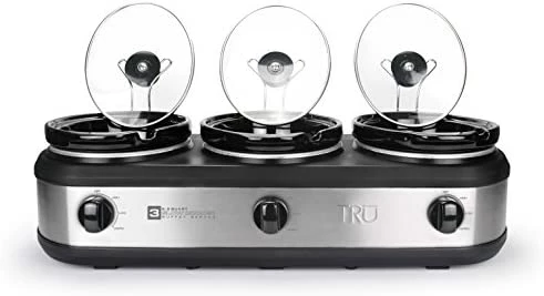 I absolutely love this slow-cooker/warmer. I use it two or three times a week to feed my family of five or larger groups of company up to 30+ folks. It’s an ideal way to serve meals to a crowd. Here are some of the meals I’ve used it for:- Baked potato bar: Cook the potatoes in the oven and serve the toppings (Broccoli, grilled chicken, white cheddar sauce, etc.) from this server.- Pasta bar: Boil penne pasta in a large stock pot on the stove, and let your guests choose their sauce from the server: Meat marinara, Garlic alfredo with chicken and aspargus, or Vegan vodka arrabiata- BBQ pulled pork: Toast some buns on the side and fill them pulled pork from the slow cooker. I cook a butt or shoulder cut in root beer all day in slow cooker on low, then shred it and hour before my guests arrive, dump the juices and return it to the warmer, cover it with BBQ sauce, and mix well. Put some green beans and mashed potatoes in the other two warmers and you have yourself the perfect summer meal for a crowd.- Fajitas: Saute the steak, onions and peppers ahead of time, and transfer to a slow cooker. Put beans in another one and spanish rice in the third. warm you tortillas as guests arrive and let them help themselves.- Nachos: Chili in one, ground beef with jalapenos in the next, nacho cheese sauce in the third. A giant bowl of tortilla chips on the side. Everyone’s favorite Game Day fare.- Breakfast: Thanks to this warmer, I’m now able to scramble eggs, fry my sausage and broil my potatoes before I start on the pancakes/waffles/french toast/whatever, and I no longer have to risk burning the bread because I’m a terrible multi-tasker. I just transfer the side dishes to the warmer while I focus on the main dish.One highlight I especially appreciate is the ideal size of the pots. They fit in the dishwasher and they also look lovely as regular serving dishes when I transfer them out of the warmer onto the dining room table. Of course the unit itself is ideal for a buffet meal, but I don’t always want to serve my food buffet style, so I like the flexibility of placing them on the table (on a trivet) and having them look right at home.I recommend this warmer for anyone who loves hosting a crowd.