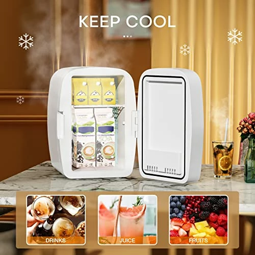 - Keep Cosmetics Fresh: Keep your favorite skin care serums, lipsticks, perfumes, cosmetic staples or fresh facial masks in the beauty refrigerator to extend their shelf life. Cool up to 59°F-64°F below ambient temperature. Just flip the switch to keep items cool.