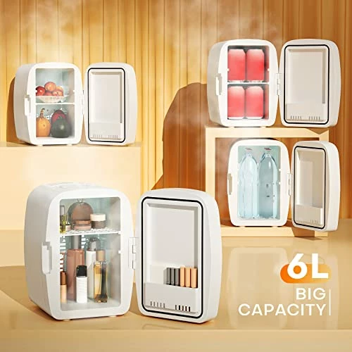 - 6 Liters Beauty Fridge: The 6-liter capacity measures 8.66×9.8×12.2 inches and weighs 5 pounds. The detachable shelf can easily separate small items such as skin care products and cosmetics, Great gift for women and girls.