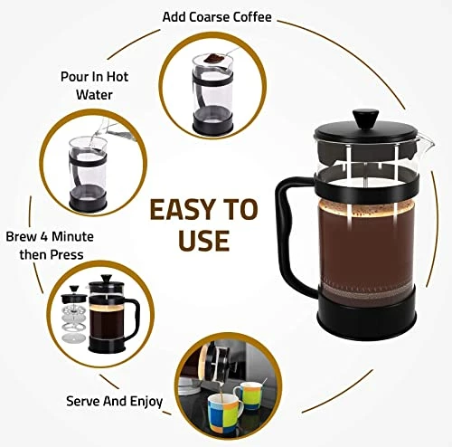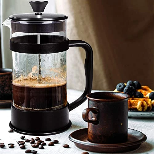 First time using a French press and it does make some good coffee. It’s a good size for one or two people drinking a cup or two each. Only complaint is that it loses temp quickly if I bought another I would look for an insulated one. But for the price it does well.