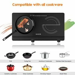 - COMPATIBLE WITH ALL COOKWAREοΌCan accommodate cookware as large as 7.1” in diameter and as heavy as 22 lbs. Different than an induction cooker, the infrared burner can be used with any pan-shaped cookware made of aluminum, stainless steel, ceramic or glass (e.g., frying pans, woks and stovetop teapots).