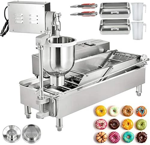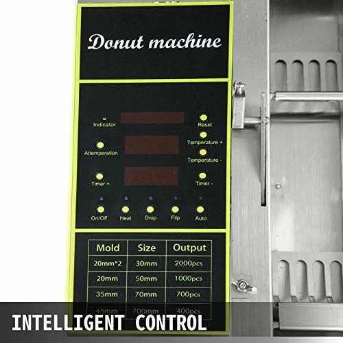 - 3 Sizes Available: Three different donut moulds are included (25 mm/35 mm/45 mm), able to produce 1100pcs 30-50 mm donuts per hour, 950pcs 55-90 mm donuts per hour, or 850pcs 70-120 mm donuts per hour. Attention Please: Since the power of this machine is relatively large, the plug is not included in the package.