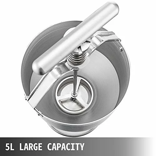 - Large Capacity: This donut plunger is equipped with a 5L capacity hopper, ฯ6.7″x7.3″ (ฯ17×18.5cm) in size, allowing several donuts to be produced at one loading. – This donut plunger is equipped with a 5L capacity hopper, ฯ6.7″x7.3″ (ฯ17×18.5cm) in size, allowing several donuts to be produced at one loading.