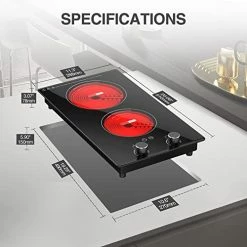 - ?ใDouble Cooking ZonesใVBGK Ceramic Double Cooktop, with two independent heating areas, It can quickly produce different delicious foods at the same time, cook more food in less time. The 12 inch ceramic Electric cooktop rated total power 2000W(1200W+800W),Suitable for 110-120V.