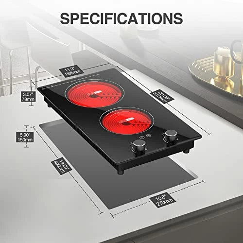 - ?ใKnob ControlใNo complicated buttons, easy to operate and use. electric cooktop is very suitable for the elderly, suitable for people with poor eyesight, not only it is easy to use, but the feeling of rotating the button by hand is more reliable. With electronic knob, our 12″ electric cooktop can prevent children or Family pets, cats from accidentally touching the switch button, which is safer than touch screen button.