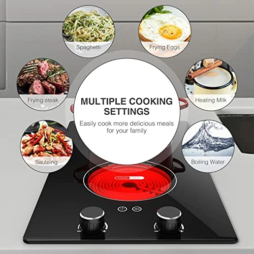 - ?ใMulti-function Ceramic StoveใVBGK Electric cooktop 2 burner have 9 power levels to meet your different choice which is convenient for you to choose the right power to cook a variety of different foods, perfect for braise, fry, simmer, steaming, boil, stir-frying, roast. The heating effect of the electric ceramic cooktop is the same as that of the gas stove, and the food made is as delicious as the gas stove.