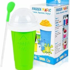 - ใEasy To Handmakeใ – Household frozen magic squeeze cup are very easy to use. 1: Freeze the slushy maker cup 5-6 hours in advance. 2: Put the drinks,juice or soda in the fresh-keeping layer of the refrigerator. 3: Pour into the fruit juices, milk,yogurt,sodas (or any fruit of your choice) pour into the slushie cup and cover lid;3: Squeeze the slushy cup for a 3-5 minutes with fingers,let the whole family enjoy DIY homemade ice cream, sorbet, frozen yogurt and other summer delicacies in no time.