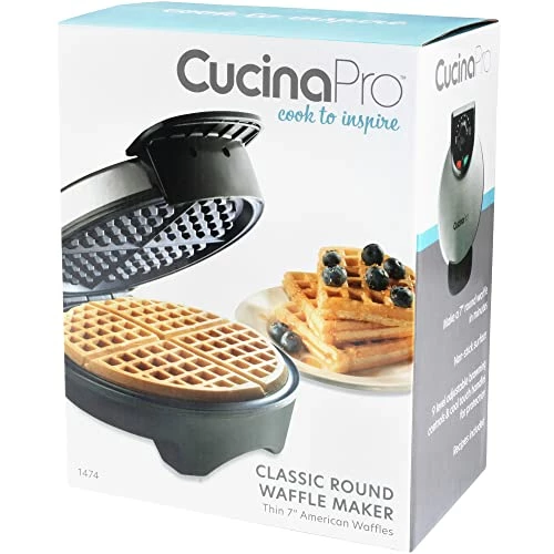 Waffle Iron by Cucina Pro – Non-Stick Round Waffler with Adjustable Browning Control – Timeless style meets modern convenience in our classic line of wafflers. Adjustable waffle browning control and a non-stick coating make these wafflers as functional in the inside as they are beautiful on the outside.