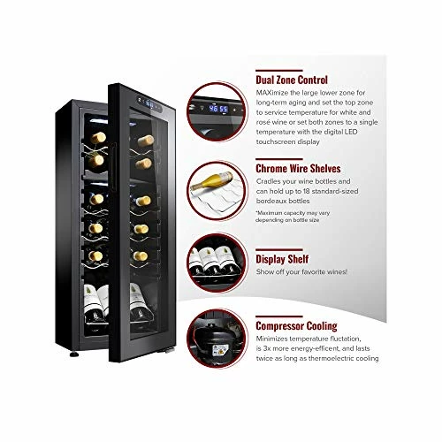 - MULTI-TASKING WINE COOLER Γ’β¬β Your varied collection needs variable temperatures, and you can have them with this dual zone compressor wine cooler. The split zone allows you to store and age red wine in the lower zone and set the perfect temperature for white and rosΓ©. Or set both to a single temperature and use it like a single zone wine cooler.