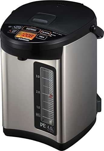 Worth the extra to get the Vacuum function, which allows it keep temps up, with now power – and you can set it to boil water hours later and then go to vacuum mode. VERY IMPORTANT – to clean it on schedule – very easy to do. We had an early version which we ruined by not regularly cleaning it. Clean = put in a citric acid solution (can get a generic brand, Z’s version not needed), fill it with water, put it on clean setting, dump it out. Easy.