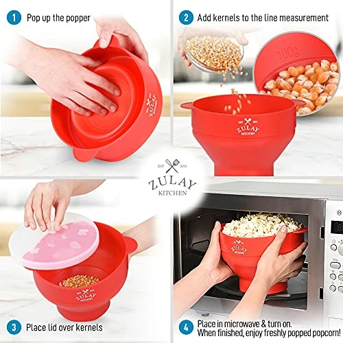 - Quick & Easy Popcorn: Enjoy the ultimate snacking experience at the comfort of your home. Make 15 cups of delicious popcorn within a few minutes with our durable Silicone Popcorn Popper. It’s better than harmful pre-package microwavable popcorn bags can contain a lot of salt, fat, and additives turning these whole-grain nutritious kernels into an unhealthy snack. Get that delicious crunchy popcorn night out in an instant!